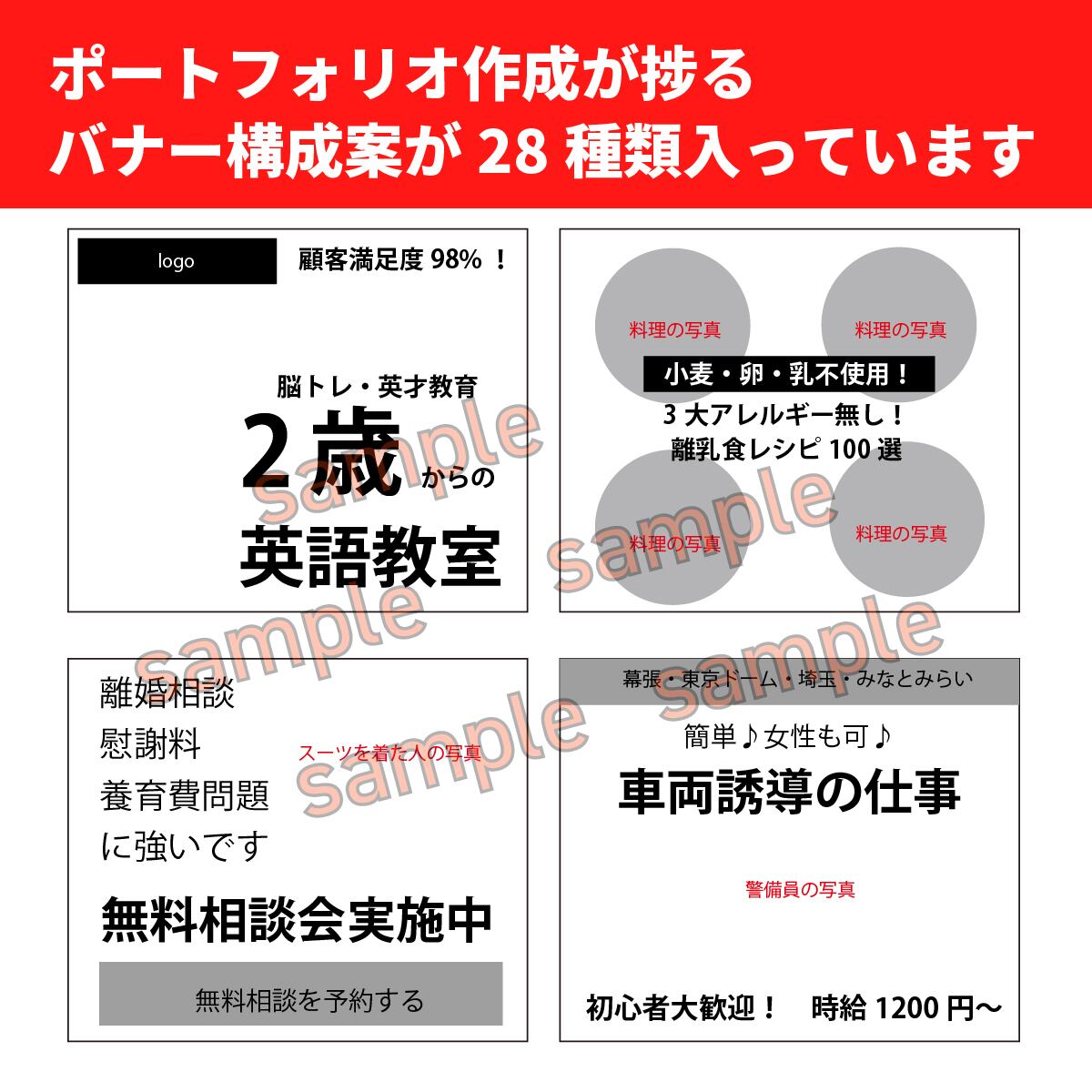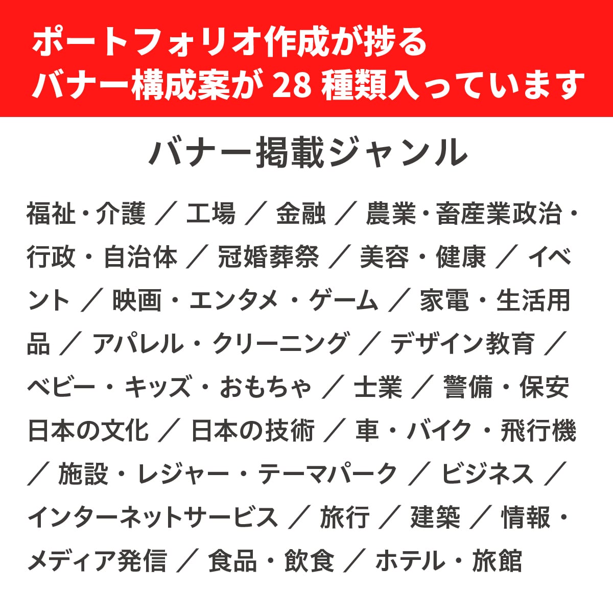 ポートフォリオ作成がはかどる構成案が28種類詰まっているPDFです。